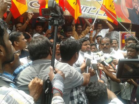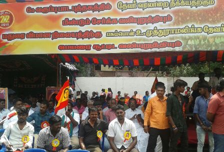 ஆறாம் வகுப்பு பாட புத்தகத்தில் சுதந்திர போராட்ட தியாகி பசும்பொன் முத்துராமலிங்க தேவரின் பாடத்தை மீண்டும் சேர்க்க கோரி அகில இந்திய பசும்பொன் முன்னேற்ற கழகம் சார்பில் பிரமாண்ட கண்டன ஆர்ப்பாட்டம் நடைபெற்றது. சென்னை சேப்பாக்கத்தில் நடைபெற்ற இந்த ஆர்ப்பாட்டத்துக்கு அகில இந்திய பசும்பொன்முன்னேற்ற கழகத்தின் நிறுவன தலைவர் ஏ.எம் மூர்த்தி தேவர் தலைமை வகித்தார். இந்த ஆர்ப்பாட்டத்தில் தமிழகத்தின் பல்வேறு மாவட்டங்களில் இருந்து தொண்டர்கள் கலந்து கொண்டனர். இதில் பங்கேற்ற மாவட்ட நிர்வாகிகள் மற்றும் மாநில நிர்வாகிகள் பசும்பொன் முத்துராமலிங்க தேவரின் பாடத்தை மீண்டும் ஆறாம் வகுப்பு பாடத்தில் சேர்க்க வேண்டும் என வலியுறுத்தினர். இந்த பாடத்திட்டத்தை அகற்றிய தமிழக அரசுக்கு கடும் கண்டனம் தெரிவித்தனர். முதலமைச்சரும் துணை முதலமைச்சரும் விரைந்து அக்கறை காட்டி தேவரின் பாடத்தை இடம்பெறசெய்யவேண்டும் என்றும் வலியுறுத்தினர். பசும்பொன் முத்துராமலிங்க தேவர் ஜாதிகளுக்கு அப்பாற்பட்டு அனைத்து தரப்பினரையும் நேசித்தவர் என்றும் அவர் பல்வேறு சமூக மக்களால் போற்றப்படும் சமூக தலைவர் என்றும் புகழாரம் சூட்டினர். இந்த ஆர்ப்பாட்டத்தின்போது செய்தியாளர்களிடம் பேசிய அகில இந்திய பசும்பொன் முன்னேற்ற கழக நிறுவன தலைவர் ஏ.எம்.மூர்த்தி, தமிழக மக்களின் நலனுக்காக பாடுபட்ட தேசிய தலைவர் தேவர் பாடத்தை மீண்டும் பள்ளி காபாட புத்தகத்தில் இடம்பெற செய்ய வேண்டும் என்றார். மேலும் இந்த போராட்டத்தை தொடர்ந்து வேறு வடிவங்களுக்கு போராட்டம் செல்ல கூடாது என்பதே தங்களின் விருப்பம் என்றும், தமிழக முதலமைச்சரும் துணை முதலமைச்சரும் இந்த நடவடிக்கையில் நேரடியாக இறங்க வேண்டும் என்றும் வலியுறுத்தினார். அதே போன்று மதுரை விமான நிலையத்துக்கு தேவரின் பெயரை சூட்ட வேண்டும் என்றும் அவர் கேட்டுக்கொண்டார். தங்களின் போராட்டத்தை தொடர்ந்து நடவடிக்கை எடுக்க அரசு மறுத்தால் தமிழகம் முழுவதும் தங்களின் போராட்டங்கள தொடரும் என ஏ. எம். மூர்த்தி எச்சரிக்கை விடுத்தார். இந்த போராட்டத்தில் திரளான இளைஞர்களுபம்பெண்களும் பெருமளவில் பங்கேற்றனர்.
