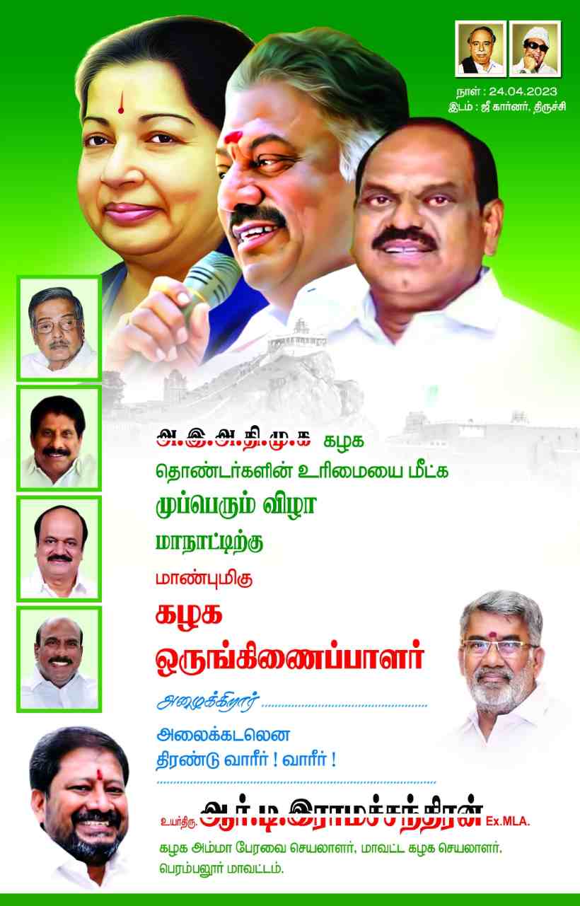 AIADMK’s triple function tomorrow in Trichy: Call for volunteers to attend in large numbers; District Secretary RT Ramachandran Notice!