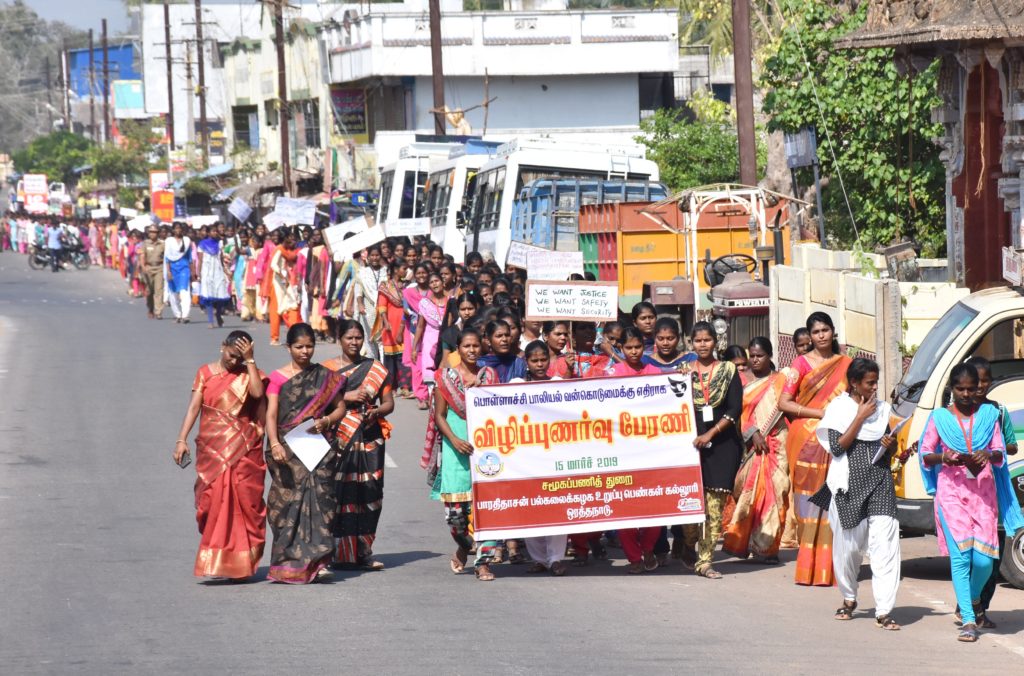 பொள்ளாச்சி சம்பவம் குறித்து, தஞ்சை மாவட்டம், ஒரத்தநாடு பாரதிதாசன் பல்கலைக்கழக உறுப்பு பெண்கள் கல்லூரியின் சமூகப்பணித் துறை சார்பில் “பொள்ளாச்சி சம்பவம் குறித்த விழிப்புணர்வு பேரணி” நேற்று நடைபெற்றது.
