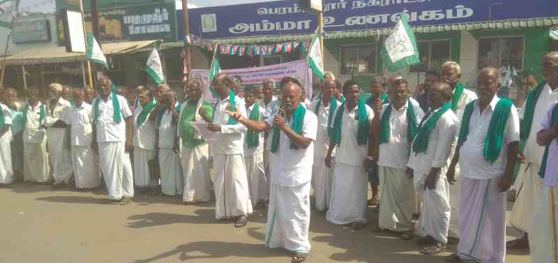 Farmers’ Union protest in Perambalur! Under the leadership of State Secretary R. Rajashidambaram!