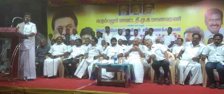 கூட்டத்தில், தி.மு.க உயர்நிலை செயல் திட்டக்குழு உறுப்பினர் -முன்னாள் ஒன்றிய நிதித்துறை இணை அமைச்சர் எஸ்.எஸ்.பழனிமாணிக்கம், எம்.பி., தலைமை கழக பேச்சாளர் மதுரை குருசாமி, மாவட்ட கழகச் செயலாளர் குன்னம் சி. இராஜேந்திரன் – சட்டமன்ற உறுப்பினர் எம். பிரபாகரன் ஆகியோர் சிறப்புரையாற்றினார்கள்.