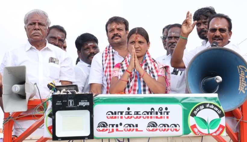 Kunnam: Candidate Names a Child During Campaign; IJK Candidate Saranya Solicits Votes by Promising to Waive Loans Taken by Farmers from Cooperative Banks!