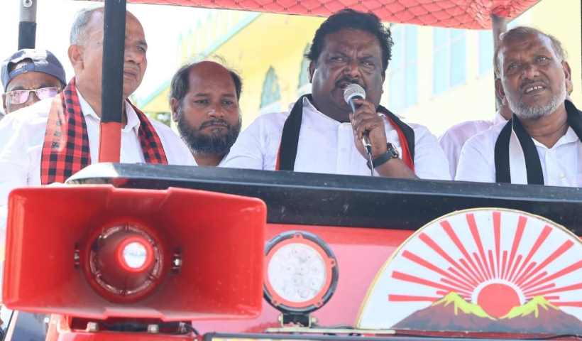 Kunnam: “The votes you cast for the UdayaSuriyan (Rising Sun’) symbol must serve as a death knell for communal forces,” declared Minister Sivasankar during his election campaign speech.