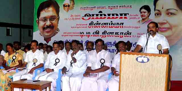 பெரம்பலூர் புதிய பேருந்து நிலையத்தில், டி.டி.வி. தினகரன் அணி சார்பில் மொழிப்போர் தியாகிகளுக்கு வீர அஞ்சலி செலுத்தும் வீரவணக்க நாள் பொதுக்கூட்டம், மாவட்ட செயலாளர் எஸ்.கார்த்திகேயன் தலைமையில் நடந்தது. மாவட்ட மாணவரணி அமைப்பாளர் இரா.ஜீவானந்தம், வரவேற்றார்.
