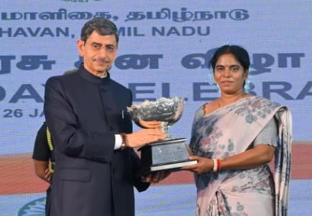 More funds collected than the target; the Governor presented a shield and praised the Perambalur Collector!