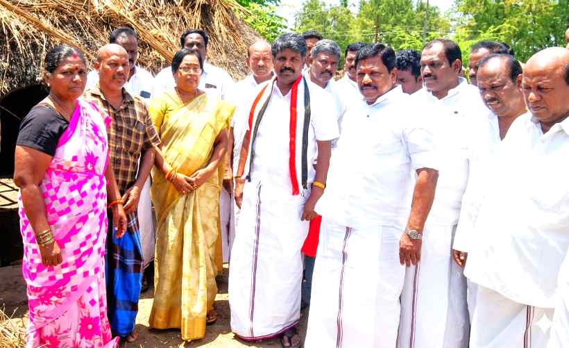 Perambalur: AIADMK Candidate Elambai R. Tamilselvan Personally Visits and Offers Consolation to Families Affected by Fire Accident!