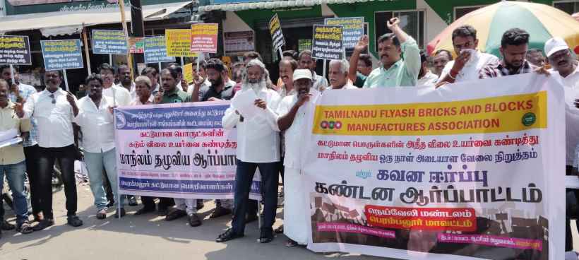 ஆர்ப்பாட்டத்தில், எம்.சாண்ட், பி.சாண்ட், ஜல்லி கற்களின் விலை உயர்வை ரத்து செய்ய கோரியும், கல்குவாரிகளை அரசுடமையாக்கினால் அரசுக்கு ஆண்டுக்கு பல ஆயிரம் கோடி வருமானம் கிடைக்கும். பொதுமக்களுக்கும் தரமான கல்குவாரி பொருட்கள் நியாயமான விலையில் கிடைத்திடும். எனவே அதற்கான நடவடிக்கையை எடுக்க வலியுறுத்தியும், அதிகமாக உயர்த்தப்பட்டுள்ள கட்டட அனுமதி கட்டணத்தைக் குறைக்க கோரியும்…