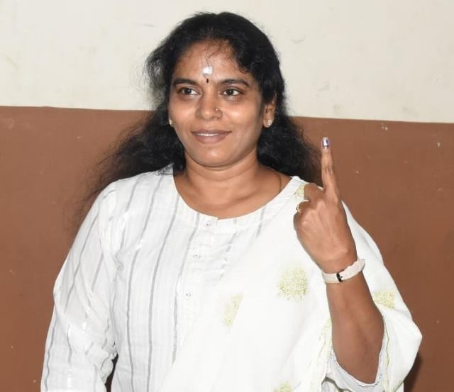 பெரம்பலூர் கலெக்டர் மிருணாளினி, இன்று காலை ரோவர் பள்ளியில் அமைக்கப்படட வாக்குச் சாவடியில் தனது வாக்கிணை பதிவு செய்தார்.