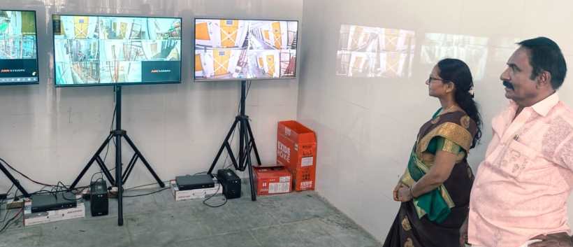 Perambalur: District DMK In-charge V. Jegadeesan inspected the premises to ensure the security of the voting machines. Candidate Jayalakshmi accompanied him.