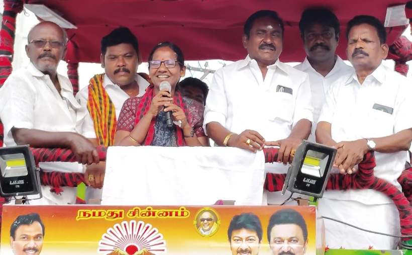 Perambalur: “Forget political parties—cast your vote for me and ensure my victory”; DMK candidate Jayalaxmi garnered votes on her native soil!