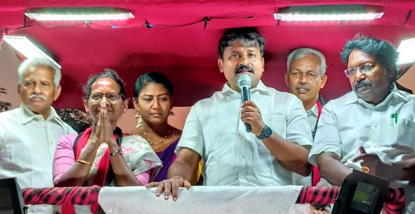 Perambalur: “Hailing from an ordinary family, she has reached this position through sheer hard work; ensure the victory of DMK candidate Jayalakshmi.” — Campaign by MP K.N. Arun Nehru and MLA Prabhakaran.