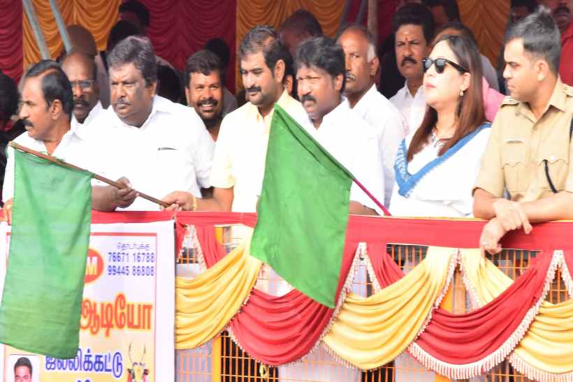 Perambalur: Jallikattu in Poolambadi; Minister Sivasankar and International Businessman Dato. S. Prakadeeshkumar flagged off the event.