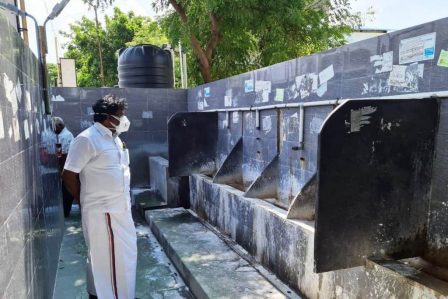 பெரம்பலூர் புதிய பேருந்து நிலையத்தில் உள்ள ஆண்கள் கழிவறையில் தண்ணீர் வருவதில்லை என்றும் சுகாதாரமற்ற முறையில் பராமரிப்பின்றி இருப்பதாகவும் பெரம்பலூர் எம்.எல்.ஏ., எம்.பிரபாகரனுக்கு செல்போனில் வந்த தகவலையடுத்து, உடனடியாக அந்த இடத்திற்கு திடீரென்று சென்ற அவர், அங்கிருந்த ஆண்கள் இலவச கழிவறைகளை பார்வையிட்டு ஆய்வு செய்தார். அப்போது கழிவறைக்கு தண்ணீர் வராமல் சின்டெக்ஸ் டேங்க் காலியாக இருந்தது. கழிவறைக்குள் உள்ள தடுப்பு பல இடங்களில் உடைந்து கிடந்தது. இவற்றை உடனடியாக சரி செய்ய நகராட்சி அதிகாரிகளிடம் செல்போனில் தெரிவித்தார். பெரம்பலூர் நகராட்சிக்கு உட்பட்ட பகுதிகளில் சேகரிக்கப்படும் காய்கறிகள் கழிவுகளை கொண்டு உரம் தயாரிக்கப்பட்டு விவசாயிகளுக்கு வழங்கப்பட்டு வருகிறது. அந்த உரக்கிடங்கை பார்வையிட்ட அவர், அங்குள்ள பணியாளர்களிடம் விவசாயிகளுக்கு உரம் வழங்குவது குறித்து கேட்டறிந்தார். மேலும் அங்கு பணிபுரியும் நகராட்சி ஊழியர்களுக்கு முகக்கவசம் கொடுத்து, அணிவதின் அவசியத்தை எடுத்துக் கூறினார். தனி மனிதரின் புகாருக்கு எம்.எல்.ஏ நேரில் சென்று கழிவறையை பார்வையிட்டு நடவடிக்கை எடுத்த எம்.எல்.ஏ பிரபாகரனை பொதுமக்கள், பயணிகள் பாராட்டி வருகின்றனர்.