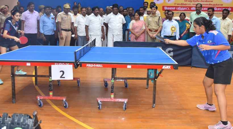 பெரம்பலூர் மாவட்ட விளையாட்டு அரங்கில், 69 வது தேசிய அளவிலான , 17 வயது க்கு உட்பட்ட பள்ளி மாணவ – மாணவிகளுக்கான மேசைப் பந்து போட்டியை கலெக்டர் மிருணாளினி தொடங்கி வைத்தார். இன்று முதல் முதல் வரும் டிச. 30 வரை நடைபெறவுள்ளது. தமிழ்நாடு, ஆந்திர பிரதேஷ், ஜார்கண்ட், மகாராஷ்டிரா, மேற்கு வங்காளம், ஹரியானா, குஜராத், இமாச்சலப் பிரதேஷ், கேரளா, திரிபுரா,புதுச்சேரி, ராஜஸ்தான், கோவா, கர்நாடகா, பஞ்சாப், மணிப்பூர், சட்டீஸ்கர், நவோதயா வித்யாலயா, பீகார், உத்திர பிரதேஷ், மத்திய பிரதேஷ், ஒடிசா, சி.பி.எஸ்.இ பள்ளிகள், தெலுங்கானா, ஜம்மு காஷ்மீர், கேந்திர வித்யாலயா, அஸ்ஸாம், சண்டிகர், வித்யா பாரதி, டெல்லி, council for the India School, IPSC, IBSSO ஆகிய குழுவினர் என இதில் 36 மாநிலங்களைச் சேர்ந்த குழுவினர் போட்டியில் பங்கேற்க உள்ளனர்.