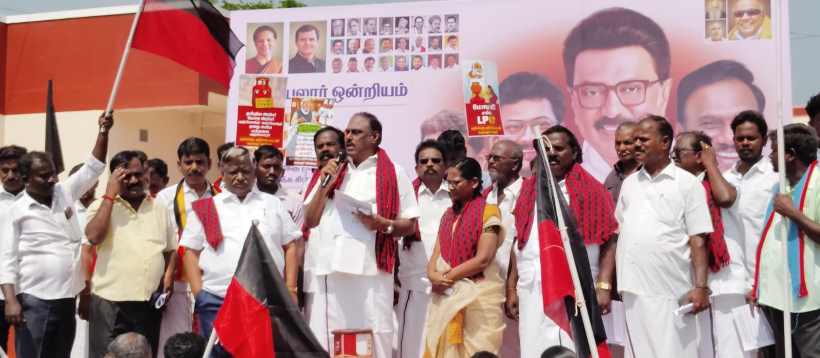 Perambalur: “No schemes for Tamil Nadu; not even gas cylinders to light the stove”—Condemnation protest held on behalf of the Secular Alliance parties.