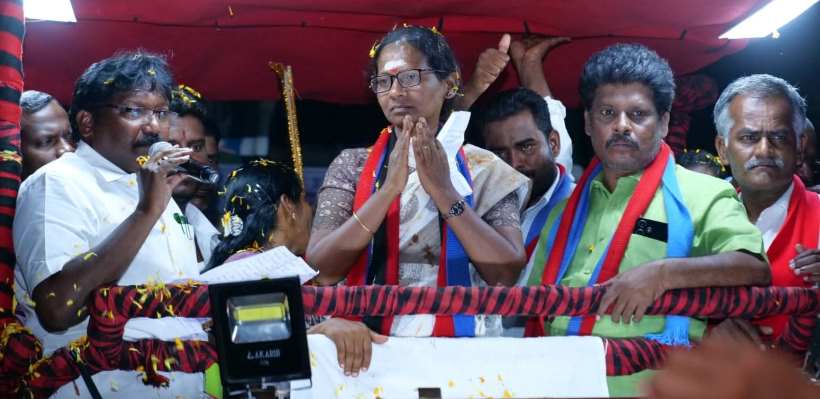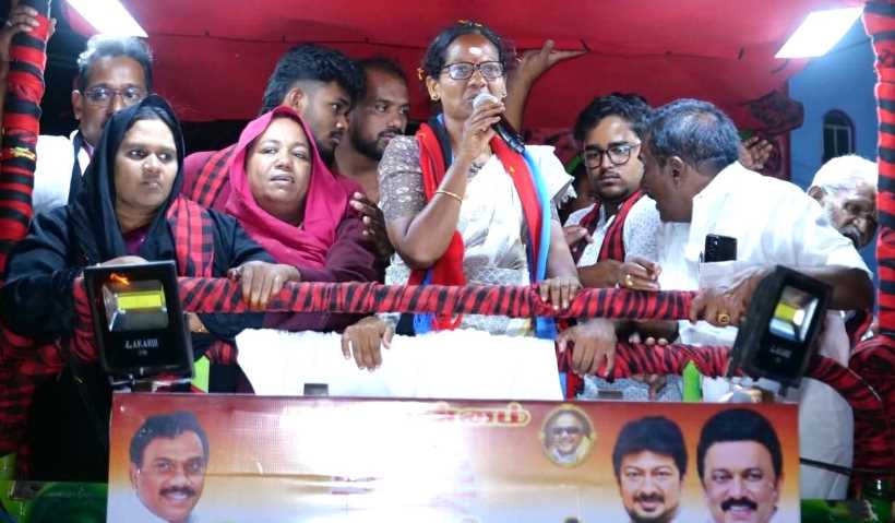 Perambalur: The DMK has implemented various development projects—including high-level bridges—that had long been pending demands; DMK candidate Jayalakshmi campaigns, seeking votes for the ‘Rising Sun’ symbol!
