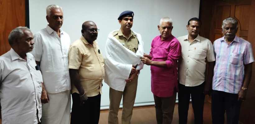 Perambalur: The jewellers’ association felicitated the police SP with a shawl for swiftly apprehending the jewellery store robbers!