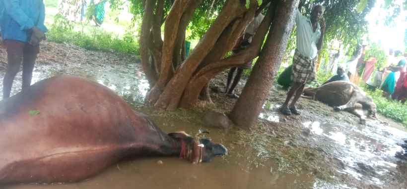 Perambalur: Two cows tied to a tree by a farmer were killed in a lightning strike!
