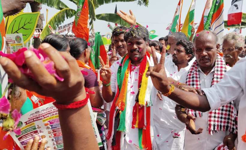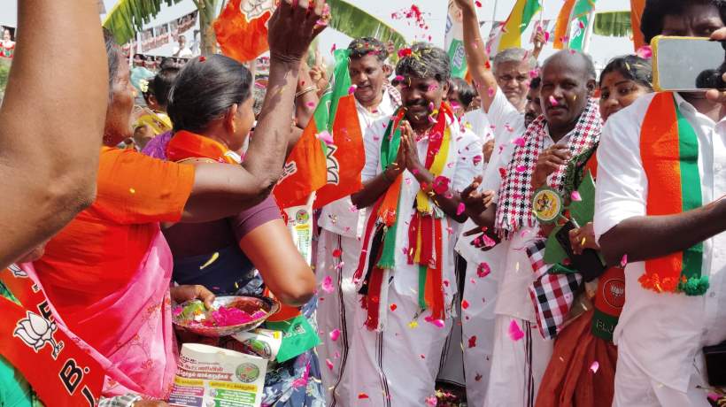 Perambalur: Women accorded a floral welcome to AIADMK candidate Ilambai R. Tamilselvan as he canvassed for votes under the ‘Two Leaves’ symbol! He is currently conducting a spirited and intense campaign in the Veppanthattai Union, accompanied by members of his alliance parties.