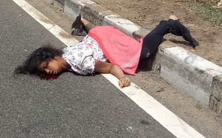 அப்போது, காரின் முன்பக்க டயர் வெடித்தது. இந்நிலையில் சாலை கடப்பதற்காக சென்டர் மீடியனில் நின்றுக் கொண்டிருந்த தனியார் பால் பண்ணை ஊழியர்கள் மதுரை மாவட்டம், உசிலம்பட்டி அருகே உள்ள நக்கராம்பட்டியை சேர்ந்த முருகேசன் மகன் மருதபாண்டி (வயது 25), மற்றும் பெரம்பலூர் அருகே உள்ள கோனேரிபாளையம் தெற்கு தெருவை சேர்ந்த சுப்பிரமணி மகள் மீனா (வயது 22) ஆகியோர் ஆகிய இருவர் மீதும் படுவேகமாக கண்ணிமைக்கும் வேகத்தில் மோதியது.